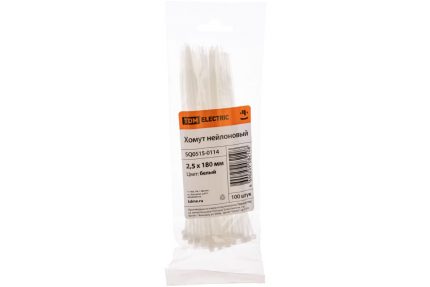 Нейлоновый хомут DKC 7.8х180 белый 100шт 25223 обычно используют для скрепления и фиксации шнуров, кабеля, проводов, для укладки в кабель-каналы и короба, для крепления кабелей к решеткам, сеткам или каркасным конструкциям. Кабельный хомут изготовлен из огнеупорного полиамида 6.6 и незаменим при электромонтажных работах. Он обладает высокой устойчивостью к различным маслосодержащим продуктам и маслам, растворителям.