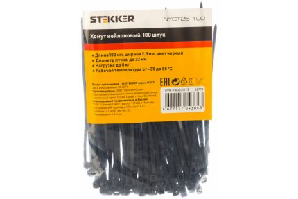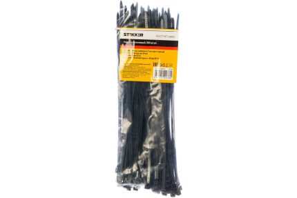Хомут STEKKER NYCT76-300 нейлоновый 7.6×300 мм, 82 мм, нагрузка 55 кг, черный, 100 шт в упак 32793