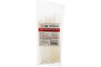 Кабельная стяжка ЭРА упак. 100 шт., 3×100, черный, морозостойкая NOKS042 Б0043911 предназначена для увязки кабелей и проводов в пучок при монтаже кабельных линий, также применяется для крепления и соединения между собой различных предметов при ремонтных и электромонтажных работах.