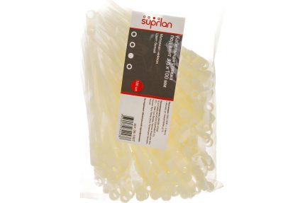 Нейлоновая стяжка под винт SUPRLAN 3.6х150 мм белая 100pcs 06-1008 изготовлена из прочного и гибкого полимера. На конце изделия расположен специальный фиксатор.