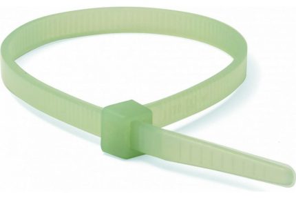 Нейлоновый хомут DKC 4.8х200 белый 100шт 25215 используют при электромонтаже, в том числе для скрепления и надежной фиксации шнуров, кабеля, проводов, для укладки в кабель-каналы, короба, для крепления кабелей к решеткам, сеткам или каркасным конструкциям. Белый кабельный хомут изготовлен из огнестойкого полиамида 6.6. Он обладает высокой устойчивостью к растворителям, маслосодержащим продуктам и маслам.