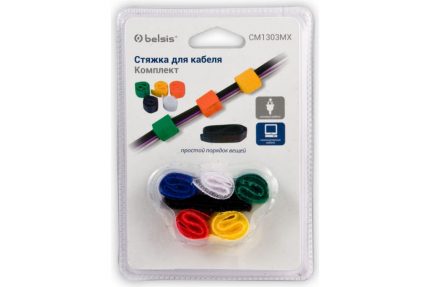 Многоразовая стяжка для кабеля Belsis тип Липучка, цветной, комплект 6 шт. в блистере EAN CM1303MX