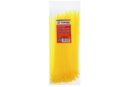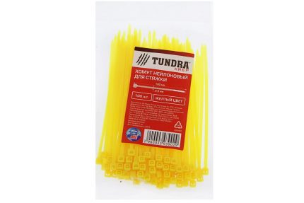 Нейлоновый хомут TUNDRA krep, для стяжки, 2.5х100 мм, цвет желтый, в упаковке 100 шт. 2393902